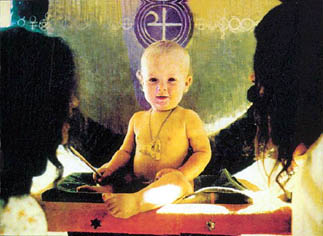 The related singles are not worth to trace musically. It contains some garage rock from Sky Saxon, but "There's nothing from his most Yod-like solo release, "Lover's Cosmic Voyage"." B.Coley All singles were released under the names of "World Peace Band", "Sky Saxon Sunflower Dragon Slayers" with "the Bangles Vicky and Debbie", or with "The Lamed",or by "Hale Sunlight Wings White Magick + Being Poor", or by "the Universal Stars Band" (CD released as related singles, CTCD-141) Unreleased materials was released as disc 13 from Captain Trip Records, CTCD-142, all by Fire, Water and Air, "largely mainstream rockoid material... plus a Saxon rap about being nice to dogs.*" * idiot hippie talk in fact. Quite OK is an earlier Yahowa track without the master from "Penetration". Tr.9, "Sky Sunlight Saxon speaking to the Earth Aquarian Family" 5 min This track, from the most loyal follower, telling about the music which I played, is a good track to end with, giving a perpsective overview but shows also how much respect as well as naivity Yahowa left behind. All quoted parts from Byron Coley, came from an article with review of the 13 CD box of Yahowa 13, which first appeared in The Wire magazine issue 180 February 1999. These quotes are reproduced by permission. Link to The Wire magazine : www.thewire.co.uk. An interview with Yahowa members can be found at http://www.furious.com/perfect/yahowa13.html Unreleased albums will come out soon at http://www.coda-records.com/news.html I started a page with some filosophical remarks about some concepts related with Yahowa : "As above, so below, New Order of the Ages", the number 13 in a group, the oncept of the guru, and the principle of "I am God", which I will later review better at a page about Salvador Dali's opera "Être Dieu". (I lost the original study of it before because of a virus computer crash, so I might need some time to reconstruct this). These remarks are published in a seperate Yahowa's concepts - remarks page Thank you J.W. for borrowing the full collection box. Another tribal psychedelic music sage like figure is Wulf Zendik Another curiosum sage like figure is Moondog Later the tribal commune group Cromagnon will have a seperate page too. Go back to the Main index |