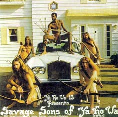 4. Father Yod and the Spirit of '76 : All or nothing at all. Higher Key Records 3304 / 1974 Yahowa collection disc 4 Captain Trip CTCD-133 "Late ass hippy makeout crud. ... B.C. Father Yod only blows the horn on the cover but does not participate on this lame album. The only noteworthy track is the bonus track "The Great Woe". "It wiggles with enough lopside mania to sound like a coed version of The Godz' "Quack (I am a quack). Around this time Father Yod changed his name into Yahoweh or Yahowah, depending on who's spelling the story, and decreed that his family could wear coloured clothes." Byron Coley Tr.14, "The Great Woe" 3 5. Yahowa 13 : Yahowa 13 Higher Key Records 3305 / 1974 Yahowa collection disc 5 Captain Trip CTCD-134° Very different in style. One simple bluesrocksong, a lame Elvis reminding pop song, an improvisational like low pop and a poprock song, all not worth so much mentioning. Keeping the improvisational style short to song zize doesn't make songs like "kind of depressing" so enjoyable. Also the next bluesy improvisational songs can't make it good for me. Only the song "Pain" is slightly better, still not making this album for me worth enough tracing it. 6. Yahowa 13 : Savage sons of Yahowa 13 Higher Key Records 3306 / 1974 Yahowa collection disc 6 Captain Trip CTCD-135**° This is West Coast styled rock. "If early Crazy Horse had been deranged by fruit juice, they might have sounded like this. Electron's fried Screamin' Jay Hawkins* vocalize on "Fire In The Sky" is particularly evocative of a bad trip. "Oh Ya Ho Wa" in particular, is a stand out of blues punk genius°." Byron Coley * some might be reminded at Captain Beefheart. ° a bit primitive punk/garage like I would say. "Red River Valley" reminds a bit at (Crosby, Stills, Nash and) Neil Young. Tr.2, "Fire in the Sky" 5 |